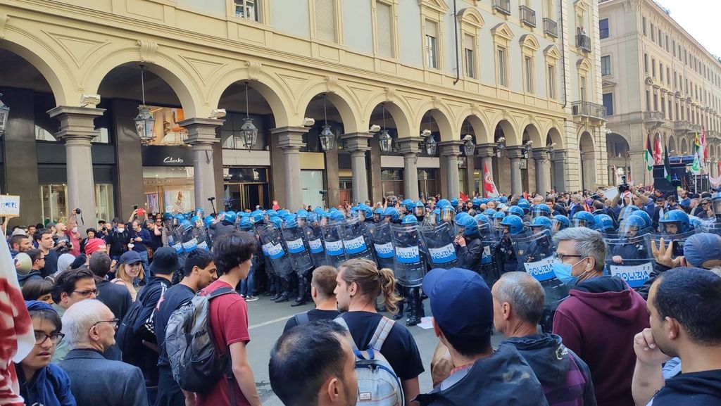 Quando tutto sembrava procedere per il meglio, una carica della polizia allo spezzone sociale in via Roma ha rapidamente modificato il clima di festa e lotta sociale del corteo del 1° maggio a Torino.