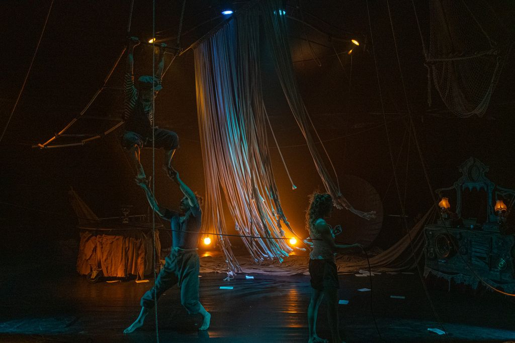 Doppia replica, mercoledì 18 e giovedì 19 maggio ore 21:30 per Krama, prima creazione di Collettivo 6tu, giovane compagnia formatasi nel 2021 e composta integralmente da artisti formatisi presso l’Accademia di Fondazione Cirko Vertigo: in scena tutto funziona grazie all'equilibrio tra gli elementi, non c'è prevalenza di un elemento a discapito dell'altro ma tutto sta in piedi perché ogni componente dà e riceve le proprie emozioni e quelle dei compagni. La reciproca fiducia permette di creare atmosfere armoniche nelle quali è possibile cogliere energia, affiatamento e sostegno.