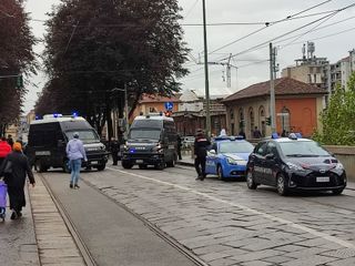 Ponte Mosca blindato dalle camionette della polizia in attesa del corteo per la sicurezza organizzato stasera dal partito della Meloni