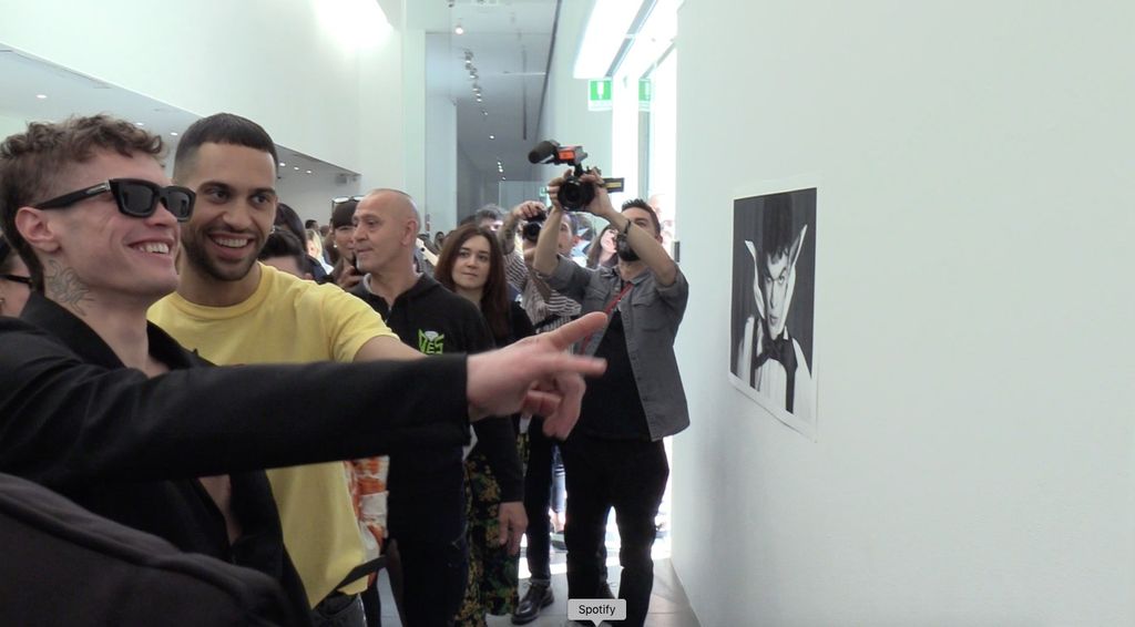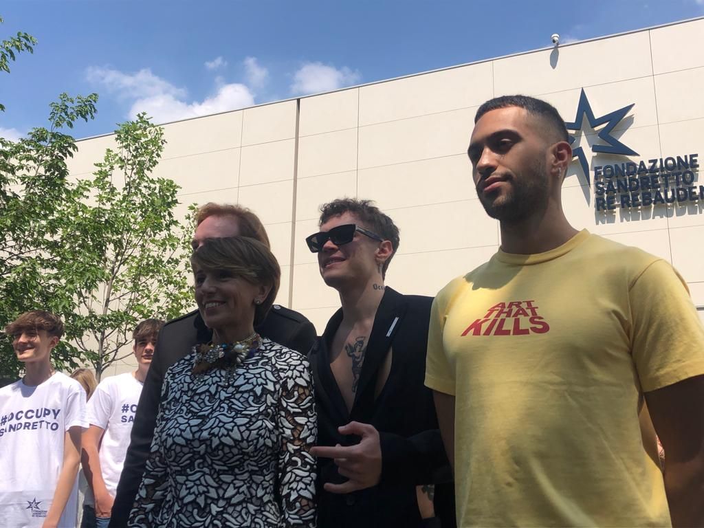 Accolti dalla padrona di casa, Patrizia Sandretto, hanno fatto una veloce visita all’esposizione e dopo hanno scattato diversi selfie con i fan accorsi numerosi alla Sandretto per conoscere i loro idoli.