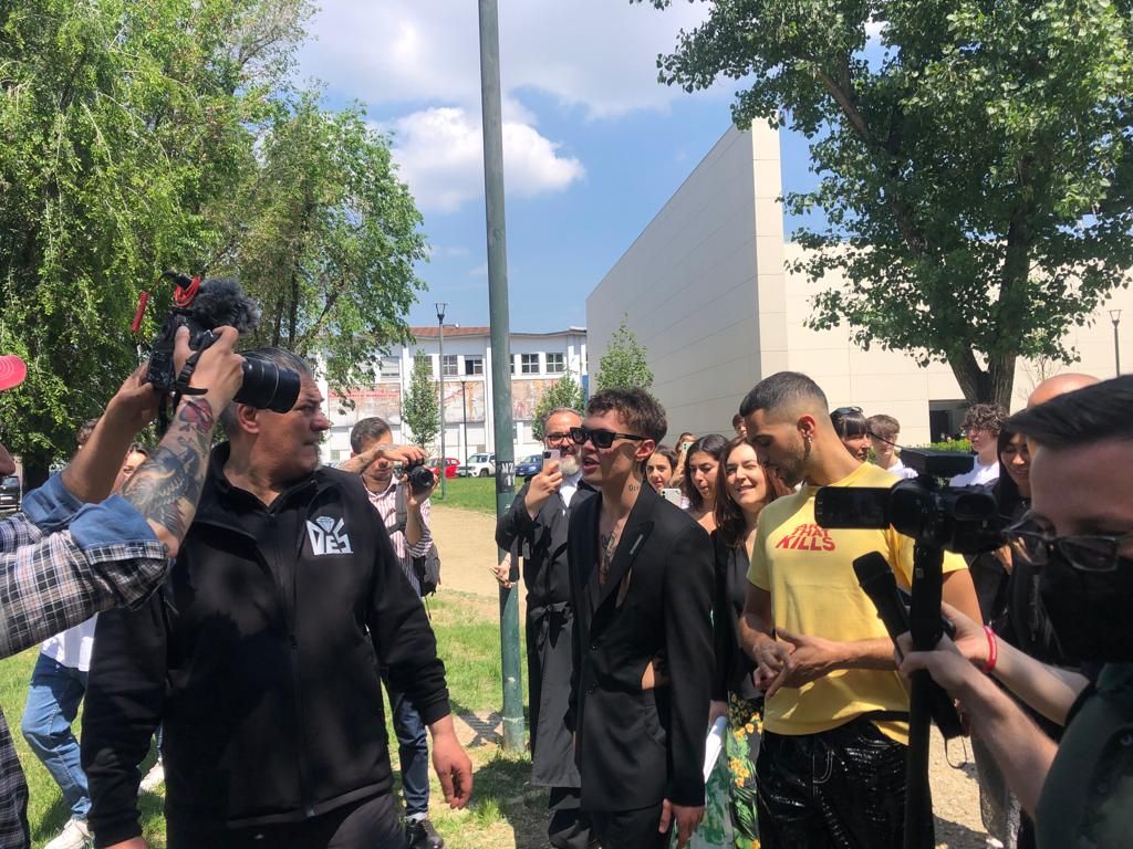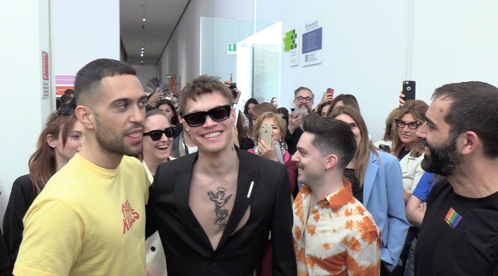 Bagno di folla per Mahmood e Blanco alla Fondazione Sandretto Re Rebaudengo. Il duo iin gara all’Eurovision Song Contest ha fatto tappa alla galleria in occasione della mostra fotografica di Luigi & Iango di cui sono stati protagonisti per il servizio di Vanity Fair.