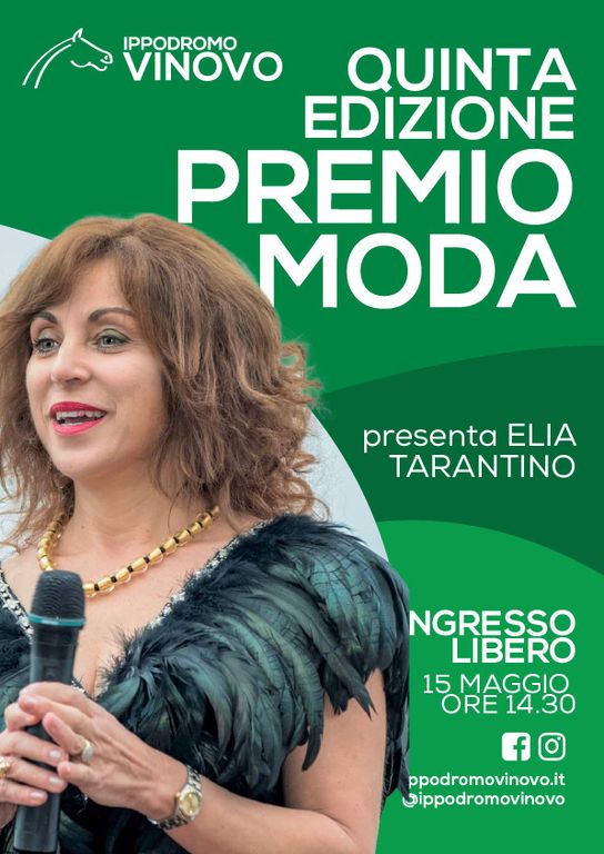 Per gli amanti della cabala il numero giusto da giocare il 15 maggio all'Ippodromo di Vinovo sarà il 5. L'evento clou della domenica dedicata al trotto sarà infatti la quinta edizione del 'Premio Moda', organizzato e presentato da una specialista, oltre che grande amica dell'Ippodromo, come Elia Tarantino.