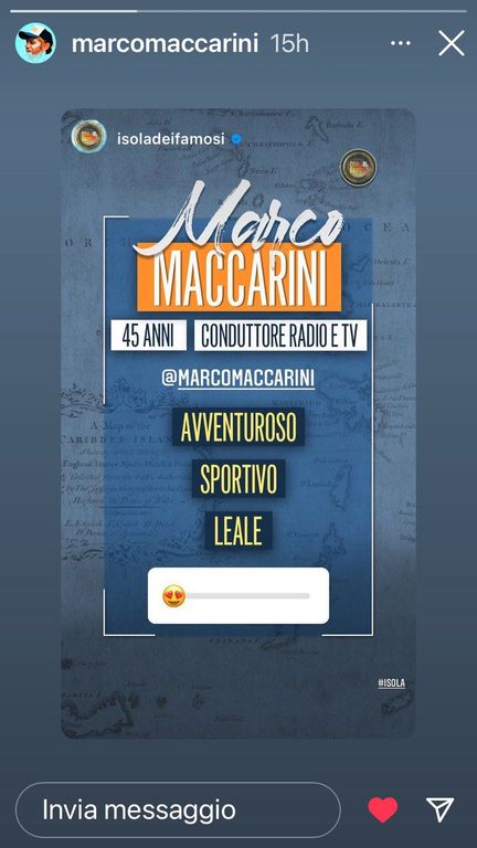 L'ex veejay torinese Marco Maccarini sbarca sull' Isola dei Famosi 2022. Venerdì la conduttrice del reality show Ilary Blasi, durante la diretta, ha annunciato l'arrivo in Honduras di quattro nuovi naufraghi. Si tratta di Gennaro Auletto, Luca Daffrè, Pamela Petrarolo e appunto Marco Maccarini.