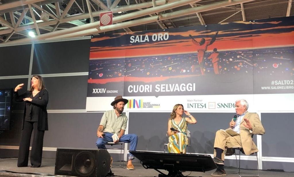 L'artista ha presentato insieme a Nicola Crocetti il libro "Poesie da spiaggia", un insieme di brani scelti da entrambi.