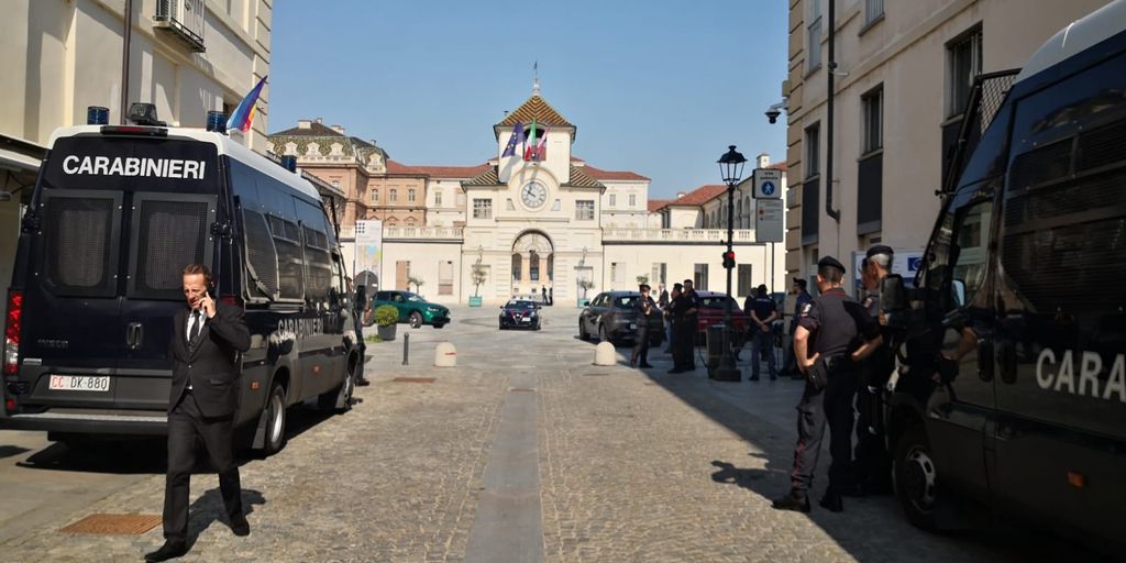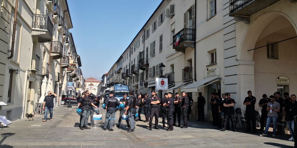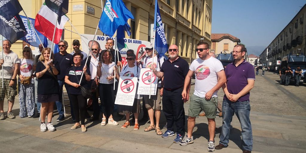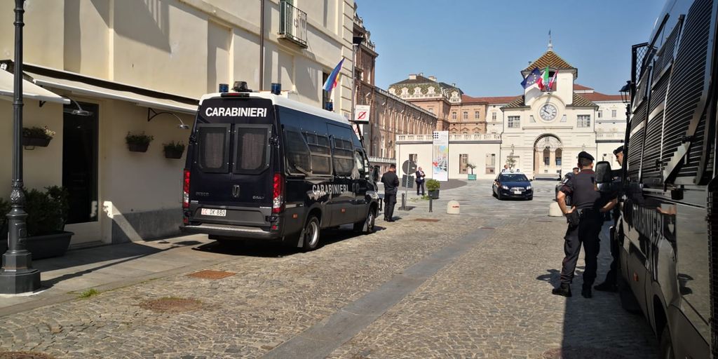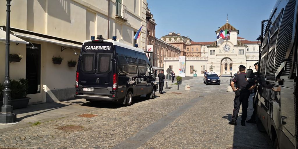 Venaria blindata per i ministri stranieri, protesta in piazza Vittorio: "Soldi a cibo e precari, non per comprare armi" [VIDEO e FOTO]