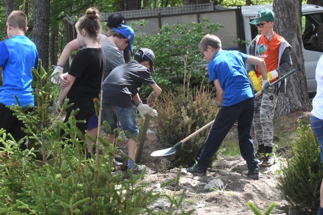 La giornata è iniziata con una lunga passeggiata con gli zaini in spalla sino alla parte alta del Pian del Colle, al termine della quale i cento giovanissimi operosi, dopo aver consumato uno spuntino con le brioche e i succhi di frutta, offerti dai commercianti di Bardonecchia e distribuiti da Carola e da Federica, presidente e segretaria della Pro Loco, hanno iniziato a piantumare.