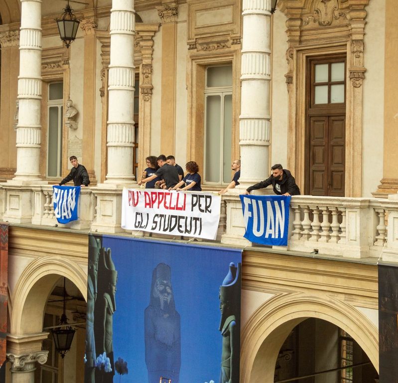 "Oggi abbiamo simbolicamente occupato il rettorato dell'Università di Torino per chiedere che venga istituito un appello straordinario permanente a settembre per tutti i corsi di studio dando a noi studenti la possibilità di organizzare al meglio la sessione estiva. È inaccettabile che nonostante il problema degli appelli sovrapposti esista da sempre Unito non si sia ancora adoperata per risolvere questa problematica".