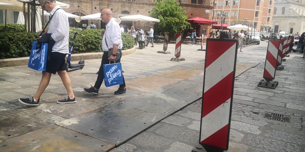Dalle 7 fino alle 17 di oggi risulta completamente chiusa al traffico, con cartelli e nastro da cantiere, via IV Marzo. Qui gli operai - grazie all'ausilio di muletti, gru e altri mezzi da cantiere - hanno sistemato piastre di metallo sul selciato di pietre. Le operazioni di preparazione scenografica proseguiranno anche nei prossimi giorni.