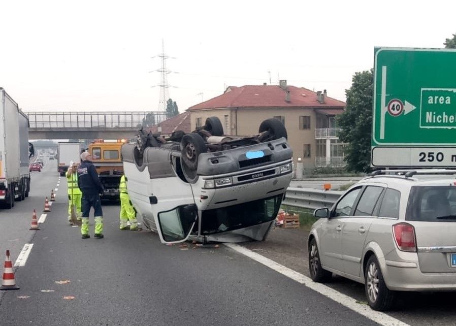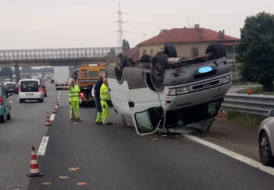 Autocarro si ribalta vicino all'autogrill di Nichelino, traffico in tilt in Tangenziale Sud