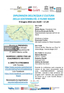 Le difficoltà di gestire l'acqua e le risorse idriche in Africa saranno al centro del convegno in programma domani, giovedì 9 giugno, dalle ore 14 nella nuova sede del Csa e Cespi in piazza della Repubblica 6B a Torino. Si tratta del terzo e ultimo appuntamento del progetto “Diplomazia dell'acqua e cultura della sostenibilità", con al centro il fiume Niger, dopo che in precedenza aveva affrontato il bacino del Nilo e poi il lago Ciad.