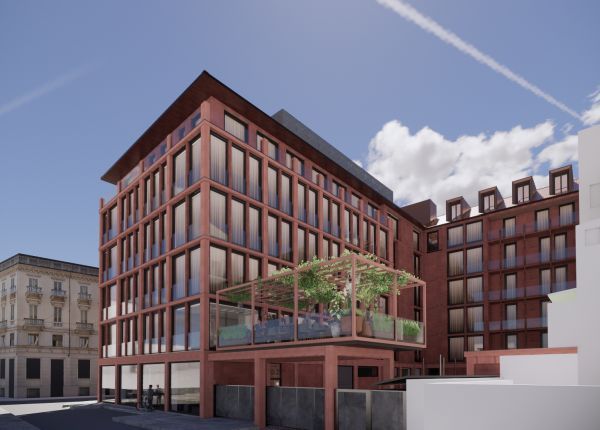 Il progetto, che mira a ristrutturare l’intero edificio, prevede infatti che il portico sia inglobato all’interno del fabbricato. L’area di 115 mq permetterà di ampliare la zona lounge dell’hotel e di costruire un vano scale per l’accesso ai vari piani dell’edificio e un ingresso ai piani interrati dell’edificio, dove saranno realizzati i parcheggi sotterranei.