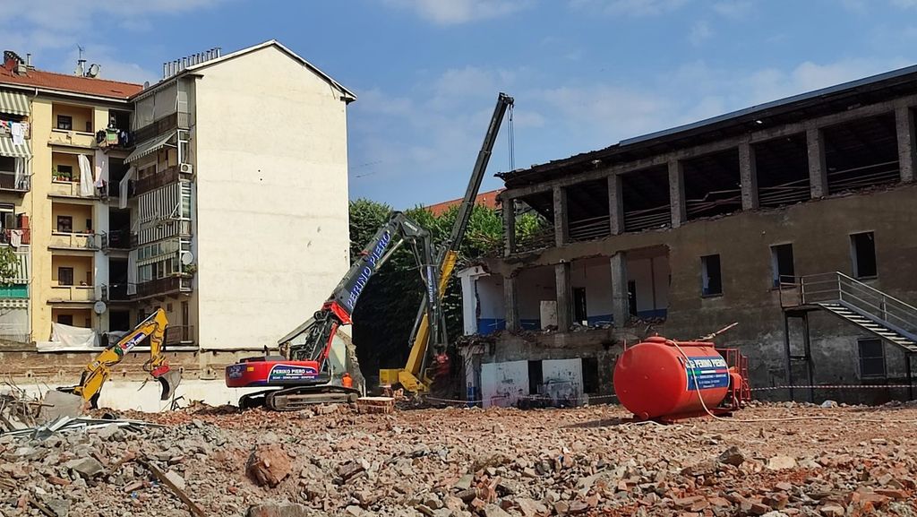 Le ruspe sono al lavoro senza sosta, sotto il torrido sole di questi primi giorni di giugno, per demolire quello che resta delle strutture: l'operazione è già stata completata su via Aosta, da dove sono ben visibili i resti di quello che fu, mentre per ora resistono le palazzine su corso Brescia, nonostante siano già state sventrate.