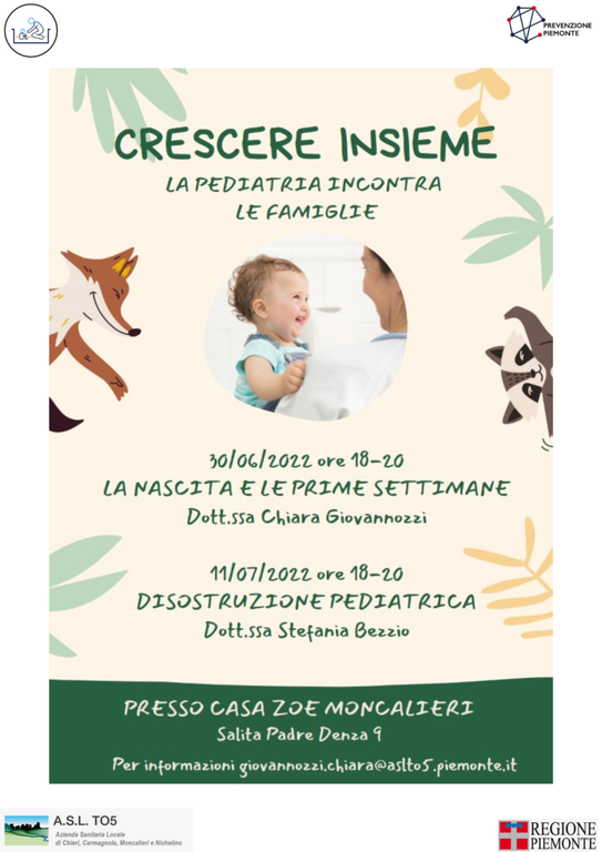 Prende il via nel tardo pomeriggio di oggi, giovedì 30 giugno, il progetto “Crescere insieme” voluto dal Comune di Moncalieri e dall'Asl To5. Il primo appuntamento è dalle ore 18 alle 20 a Casa Zoe.