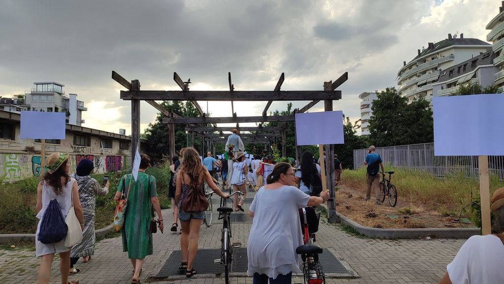 Decine di cittadini, a suon di musica e performance teatrali, hanno sfilato per le vie del quartiere toccando alcune tra le aree verdi più amate e frequentate: nell'ordine i giardini Alimonda e Madre Teresa di Calcutta, lo St'Orto Urbano e i giardini della Magnolia: “L'arte - ha sottolineato la direttrice artistica del Social Community Theatre Centre Alessandra Rossi Ghiglione – è stata in grado di mettere insieme realtà molte diverse intorno a un grande bene comune come il verde pubblico, riscoperto con la pandemia: la possibilità usufruirne in spazi di prossimità può davvero cambiare la vita delle persone. Da questo punto di vista il teatro diventa un'azione politica, non di critica ma di proposta civile”.