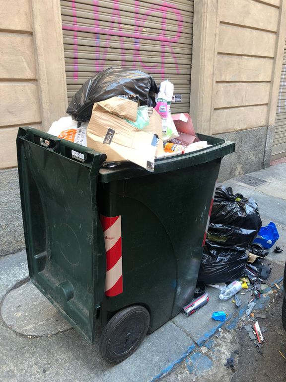 Bidoni stracolmi di immondizia in via Ormea. I residenti: "Con il caldo aumenta la puzza"