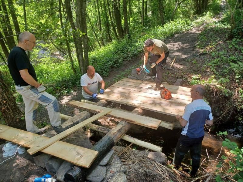 Il ponticello di legno, nei pressi del Batterello, sul sentiero che sale verso Torre e Cumba Crosa, nel territorio di Pomaretto, è stato ripristinato nei giorni scorsi dal Gruppo Alpini di Pomaretto.