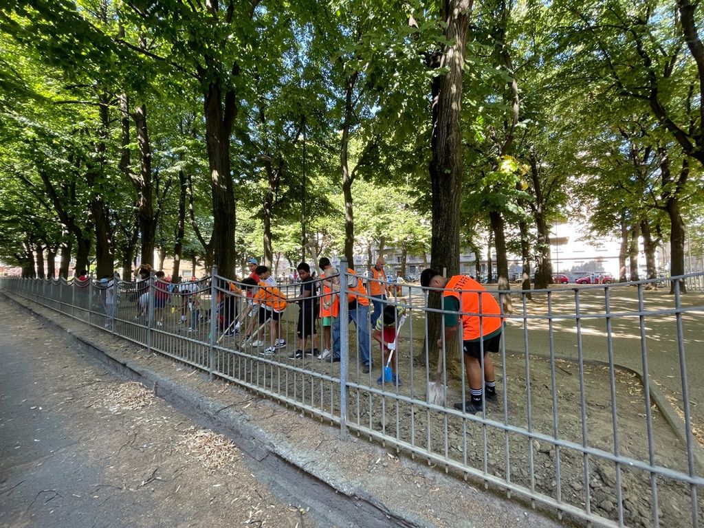 La prima attività si è svolta venerdì, quando i bambini e le bambine che frequentano i centri estivi di Yalla Aurora e ACFIL – insieme ai volontari di ARQA - hanno sistemato le aiuole al centro del patto per una mattinata all'insegna della cura del verde