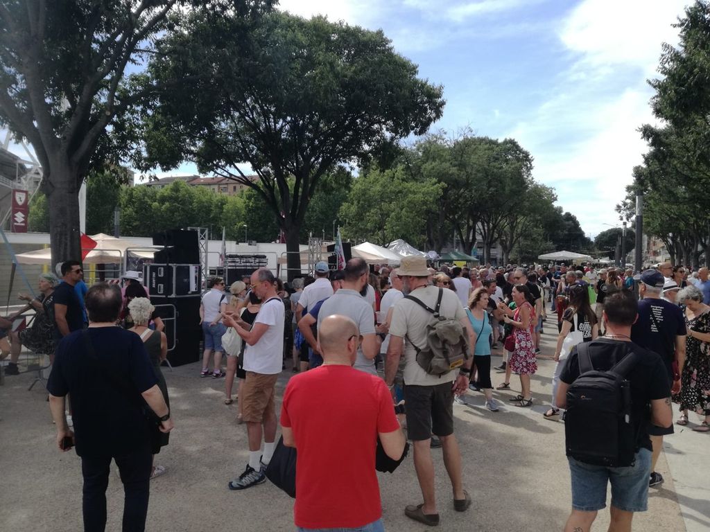 Ritrovo a pochi passi dallo stadio Grande Torino per alcune centinaia di persone tra musica, banchetti e interventi anti sistema. Domani attesi gli interventi di Meluzzi e Montesano