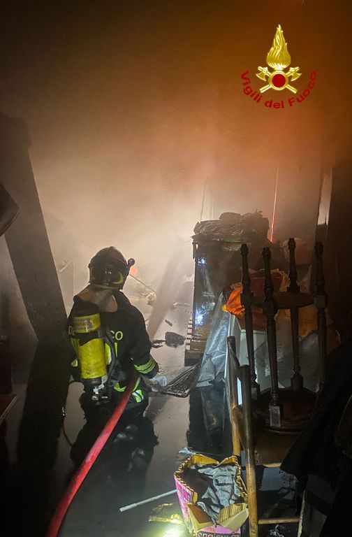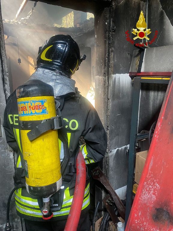 Incendio in un capannone abbandonato a Sant'Ambrogio, in tre ore i pompieri domano le fiamme