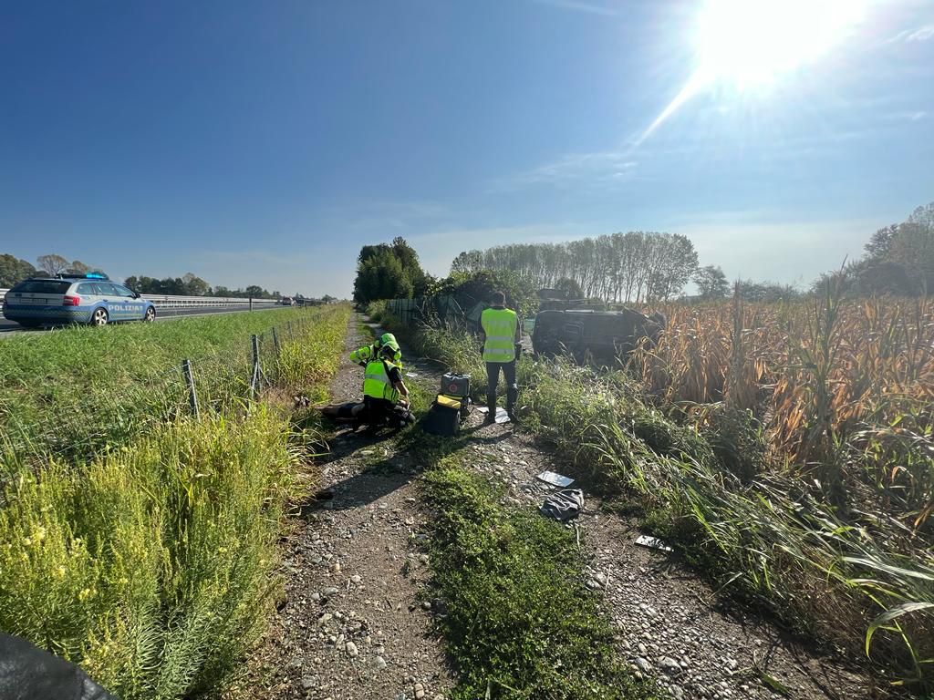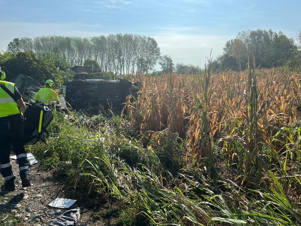 Incidente sull'A5, camioncino si ribalta e finisce nei campi: conducente grave al Cto