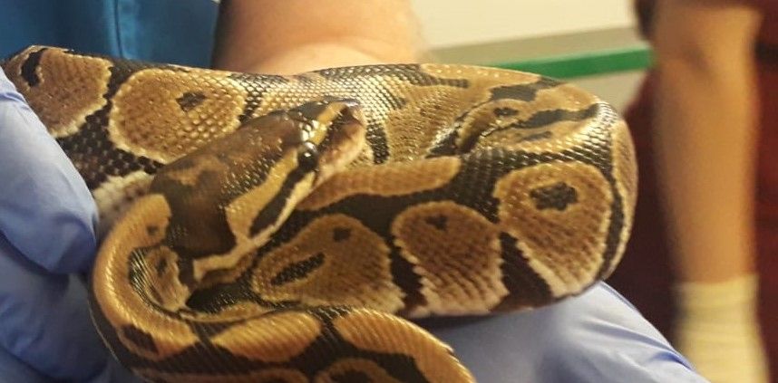 Un pitone ritrovato nel parcheggio dell'Inail: è in condizioni non buone