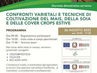 La manifestazione, che avrà inizio alle ore 10:00 con le visite ai campi sperimentali e terminerà alle 17:00, sarà l’occasione per la presentazione di tre progetti innovativi per il settore: crops4protein, Telecer, e bio-agri-apis.