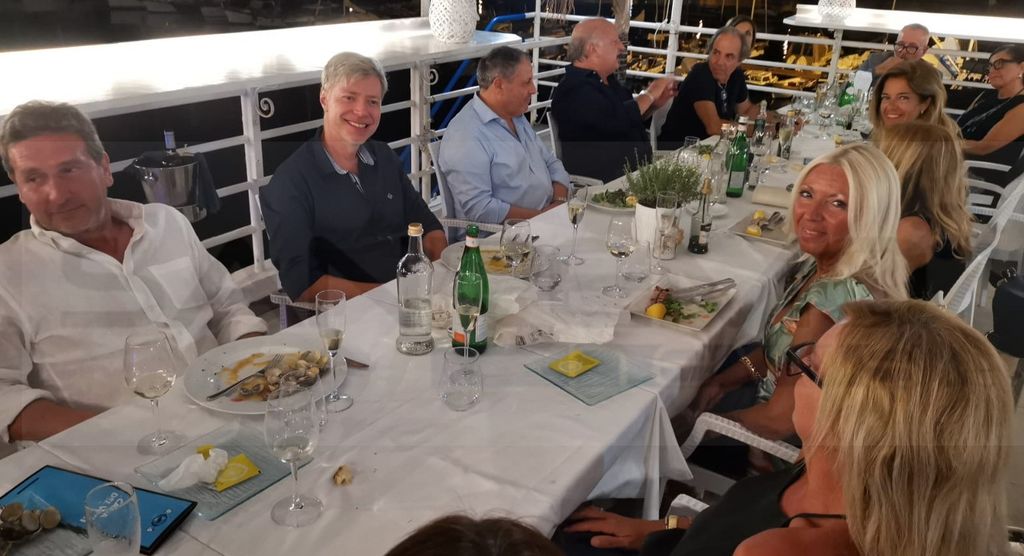 Con una cena a base di pesce locale e di ottimo vino fermentino è stata particolarmente conviviale con ricordi estivi di un gruppo di amici uniti da un ‘moletto’ (il pennello su cui insistono i lettini) che negli anni hanno rafforzato l'amicizia.