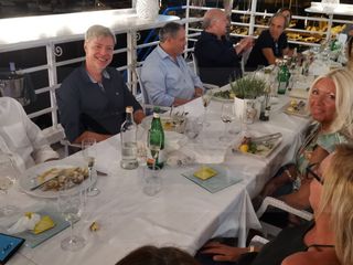 Con una cena a base di pesce locale e di ottimo vino fermentino è stata particolarmente conviviale con ricordi estivi di un gruppo di amici uniti da un ‘moletto’ (il pennello su cui insistono i lettini) che negli anni hanno rafforzato l'amicizia.