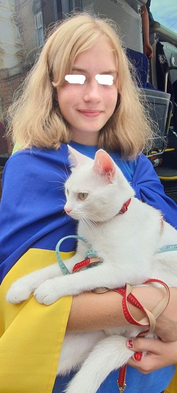 La bimba ha perso genitori e nonni, dopo un bombardamento a Mariupol, il micio è stato il suo compagno di viaggio in Italia. Insieme a lei altri venti giovani
