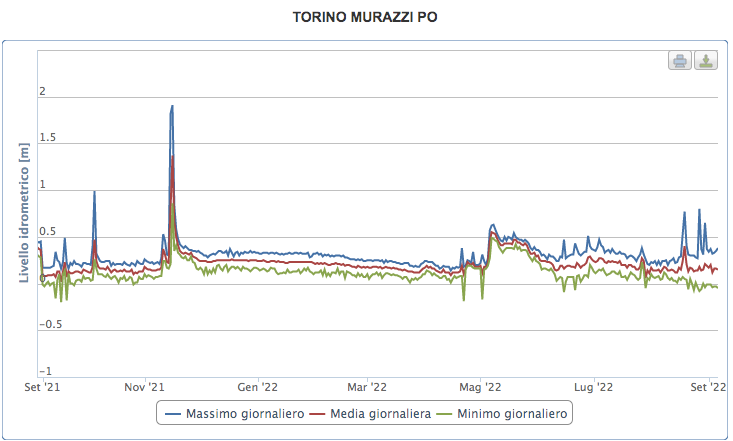 Che il fiume stia lentamente guarendo, lo confermano i dati Arpa. Alla stazione Torino Murazzi infatti, il livello idrometrico giornaliero è ormai fisso a 0,15 metri nell’ultima settimana. Ancora basso, ma sopra lo zero toccato nei periodi più difficili. A lasciar ben sperare è il livello massimo toccato, che da 33 centimetri riscontrati il 4 settembre, è salito ai 38 di ieri. Insomma, una crescita costante, se pur lenta. Una situazione che migliora se ci si sposta verso corso Regina Margherita, dove il livello cresce di qualche centimetro ancora. Insomma, il peggio sembra essere passato, ma per tornare alla normalità serviranno ancora piogge soprattutto in quota.