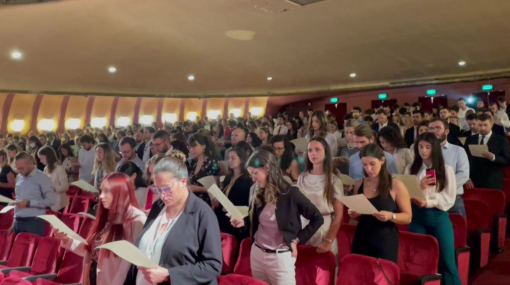 Nel pomeriggio il benvenuto ai neo iscritti. Dopo il presidente Giustetto, sono intervenuti la consigliera segretaria Rosella Zerbi, il vicepresidente della Commissione Odontoiatri Claudio Brucco, il coordinatore della Commissione Giovani Medici, Francesco Cuniberti. Quindi il giuramento professionale per i 285 giovani medici e odontoiatri presenti in sala, letto dalla dottoressa e attrice Geny Macrì: al termine hanno ricevuto tutti il distintivo dell’Ordine e una copia del codice deontologico della professione.