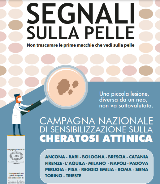 Promossa dalla SIDeMaST (Società Italiana di Dermatologia medica, chirurgica, estetica e delle Malattie Sessualmente Trasmesse) “Segnali sulla pelle” ha l’obiettivo di promuovere la diagnosi precoce per questa malattia pre-cancerosa che non può essere sottovalutata.