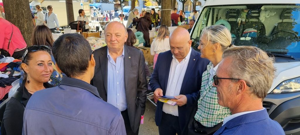 Stamattina i candidati di Forza Italia alle elezioni politiche del 25 settembre hanno fatto un giro al mercato di Pinerolo per parlare con cittadini e ambulanti.