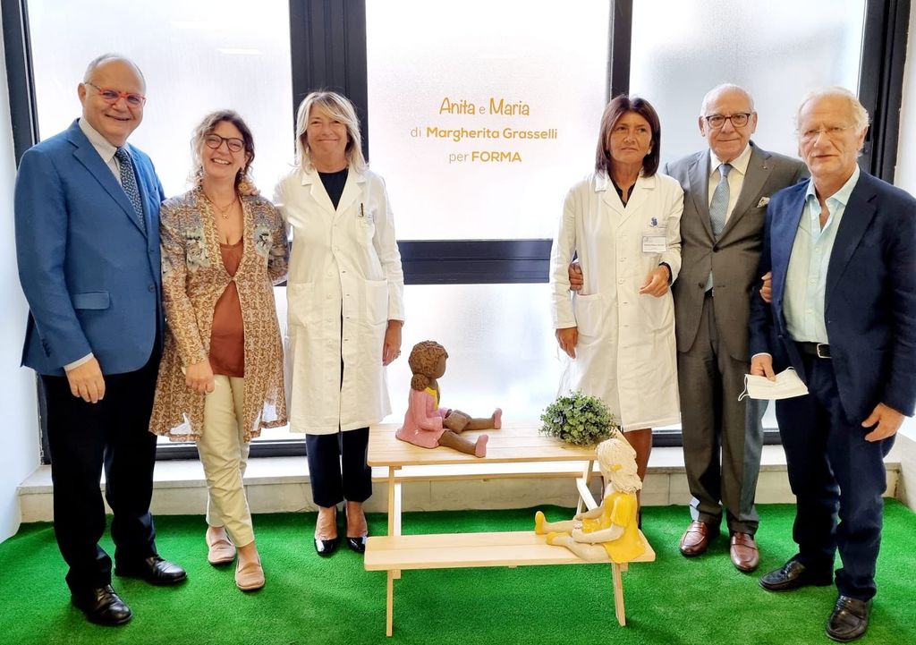 Forma, che da sempre si pone l’obiettivo, tra gli altri, di rendere migliore anche dal punto di vista estetico l’Ospedale, ha naturalmente accolto con entusiasmo l’interesse della scultrice perugina per l’Ospedale Infantile, e si è adoperata per collocare le opere nella postazione migliore e fruibile da chiunque entri in Ospedale - paziente, genitore o operatore sanitario – vale a dire l’Atrio di Piazza Polonia.