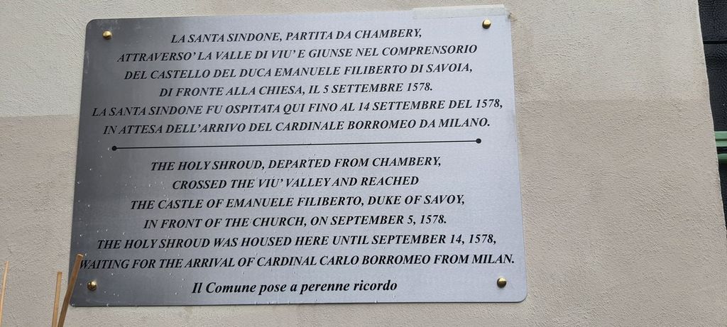 Una targa sullo stabile accanto alla Chiesa dei Santi Bernardo e Brigida, all’angolo tra le vie Pianezza e Foglizzo, da questa mattina ricorda la sosta della Sindone, presso la Cappella Ducale, nell’area conosciuta come il “Castello di Lucento”, avvenuta nel 1578, per volontà del duca Emanuele Filiberto, durante il trasferimento da Chambery a Torino, voluto dal cardinale Borromeo.