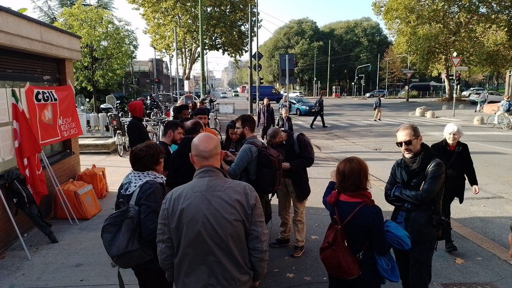 Presidio di lavoratori davanti al tribunale per l'avvio di tre processi per il riconoscimento del rapporto subordinato