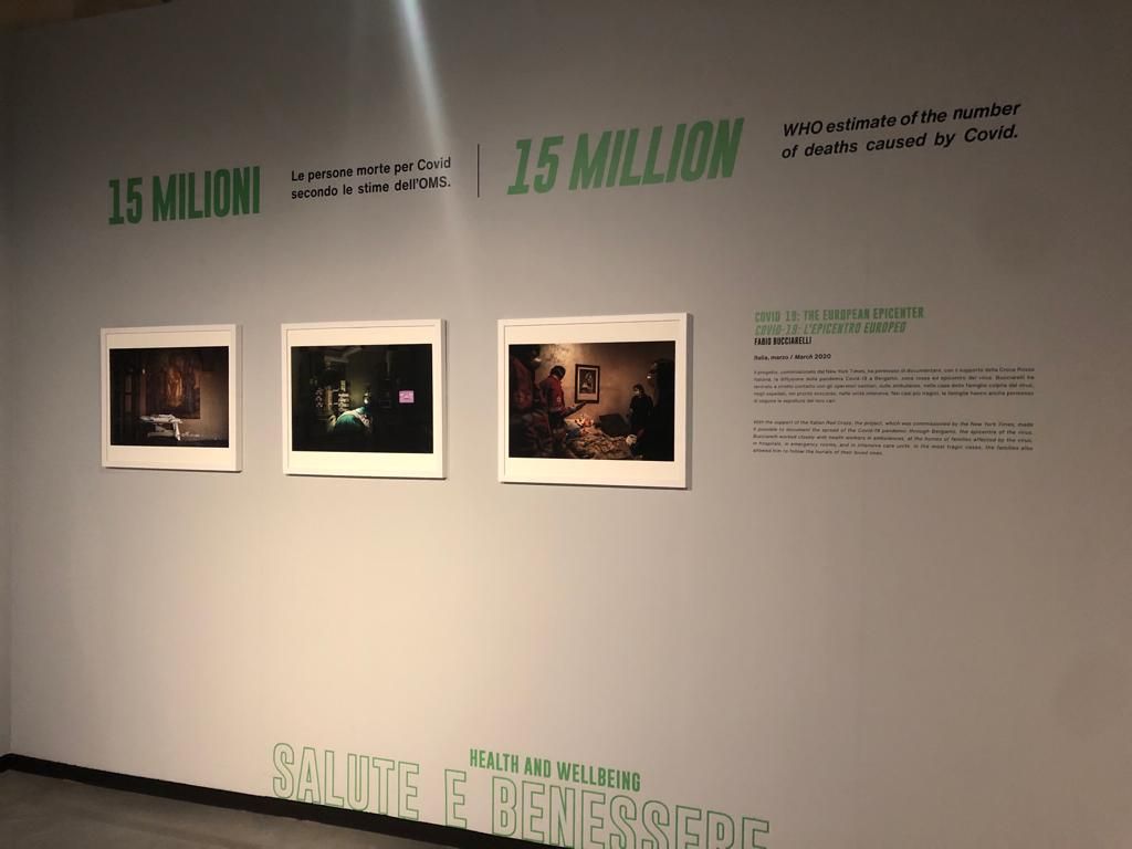 Immagini che si intrecciano ai dati di diverse organizzazioni OMS,FAO, UNICEF e che amplificano così il messaggio visivo sulle criticità del pianeta: 13 milioni gli ettari di foreste bruciate, 736 milioni le persone che vivono in povertà, 15 milioni i morti per Covid, 2 miliardi le persone colpite dalla mancanza di acqua.