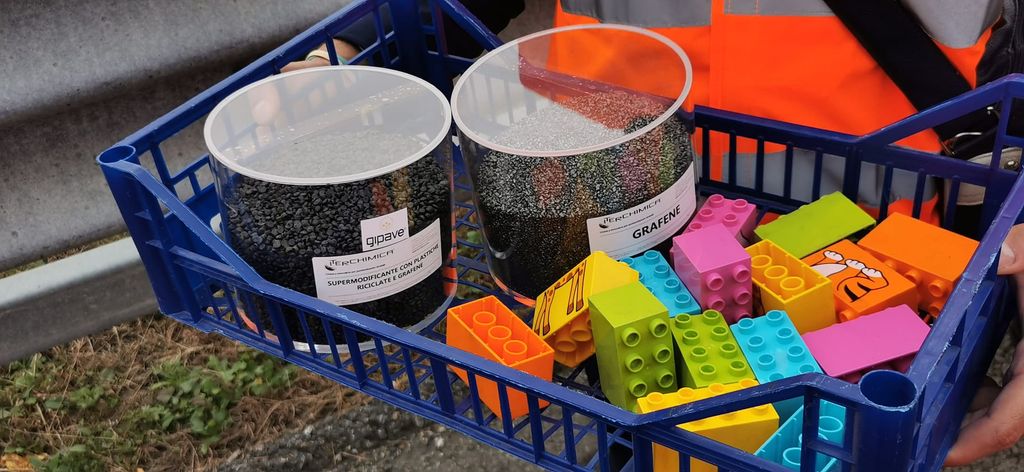 Inoltre, rispetto ad una pavimentazione realizzata con metodologia tradizionale, per questa attività verranno riutilizzati circa 1,5 milioni di kg di plastiche dure (pari circa al peso di oltre 1.200 automobili), risparmiando quasi 23 milioni di kg di bitume e circa 480 milioni di kg di materie prime estratte da cave (-40% di materiali non rinnovabili impiegati rispetto alle tecnologie tradizionali).