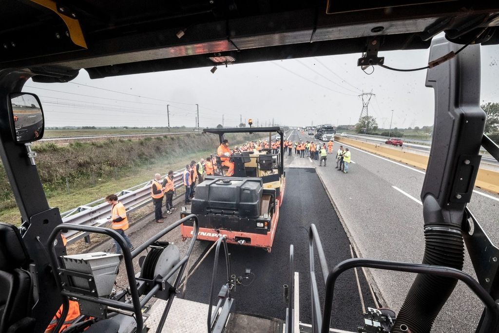 I lavori, iniziati nella mattina di oggi, giovedì 20 ottobre, interesseranno entrambe le direzioni di marcia per un totale di 250 km. Il Gruppo ASTM, secondo operatore al mondo di reti autostradali in concessione e player globale nella realizzazione di grandi opere infrastrutturali, impiegherà Gipave®, una tecnologia per asfalti che utilizza un processo brevettato e innovativo completamente made in Italy, risultato di una ricerca durata sei anni, condotta da Iterchimica - azienda italiana che opera in oltre 90 Paesi, leader nella produzione e messa a punto di prodotti e tecnologie per asfalti sostenibili - in collaborazione con G.Eco (gruppo A2A), Università degli Studi di Milano-Bicocca e Directa Plus.