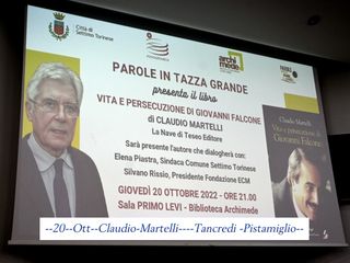 L'occasione è stata la serata che ha visto la presentazione del libro di Claudio Martelli, l'ex esponente del Psi e autore del volume dal titolo "Vita e persecuzione di Giovanni Falcone", edito da La Nave di Teseo. La cornice è stata la biblioteca Archimede, nell'ambito degli appuntamenti di "Parole in tazza grande", alla presenza anche della sindaca, Elena Piastra e di Silvano Rissio, presidente della Fondazione ECM.