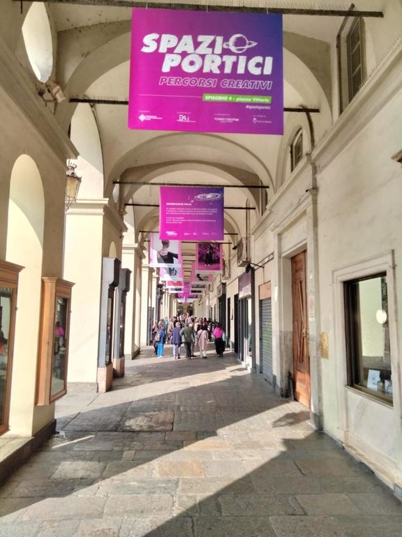 Quarta puntata per Spazio Portici - Percorsi creativi. Il progetto che espone l'arte di giovani autori lungo 12 chilometri di porticati. In passato le installazioni temporanee hanno invaso via Po, via Nizza e corso San Martino. Per questa edizione sono stati scelti quelli che corrono lungo piazza Vittorio Veneto. Un vero e proprio percorso artistico itinerante che contribuisce a dare nuova vita alle arcate, inserito nel calendario di ContemporaryART Torino Piemonte.