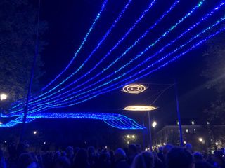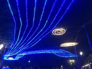“AZZURROGIALLO” del maestro Giorgio Griffa, collocata nei Giardini di piazza Cavour. Si tratta di un’installazione sospesa che appare come un flusso di energia luminosa composta da miriadi di luci dalle sfumature blu, viola, verde e giallo. Il passaggio coperto dalle luminarie evoca la ‘Notte stellata’ di van Gogh. I colori inoltre sono un omaggio alla città di Torino e all’Ucraina.