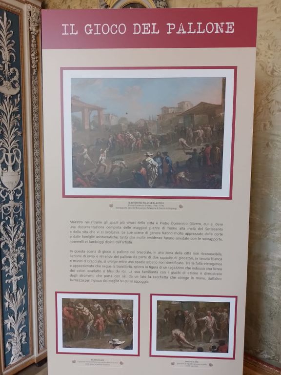 La presenza del ritratto di Francesco Giacinto e di Carlo Emanuele di Savoia (1636 - 1637) con racchetta e pallina in primo piano è stimolo alla conoscenza del trincotto, denominazione piemontese dell’antico gioco noto altrove in Italia come “della racchetta” o pallacorda, in Francia come jeu de paume, nei paesi di lingua anglosassone Tenys, in Spagna juego de la pelota.