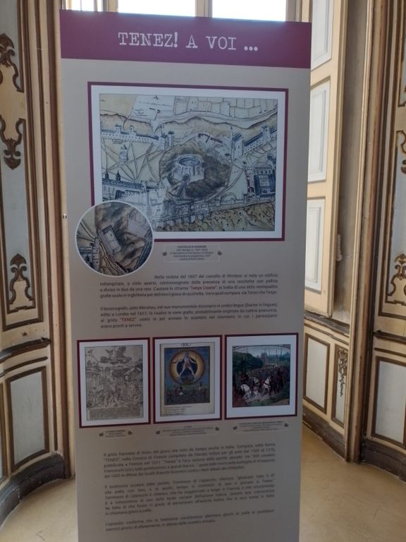 Tenez! era il grido di avvio del gioco nel Medioevo, con il lancio iniziale della palla. In Italia lo troviamo già alla fine del 300, nei momenti di riposo dei cavalieri. E da lì si prosegue per un percorso che dalle partite di volano di metà 700 presenti nelle sale cinesi di Stupinigi porta a una racchetta di fine Ottocento proveniente dalla collezione Thonet e ad una attualmente impiegata al Cercle du Jeu de Paume di Fontainebleau, arrivando alla contemporaneità.