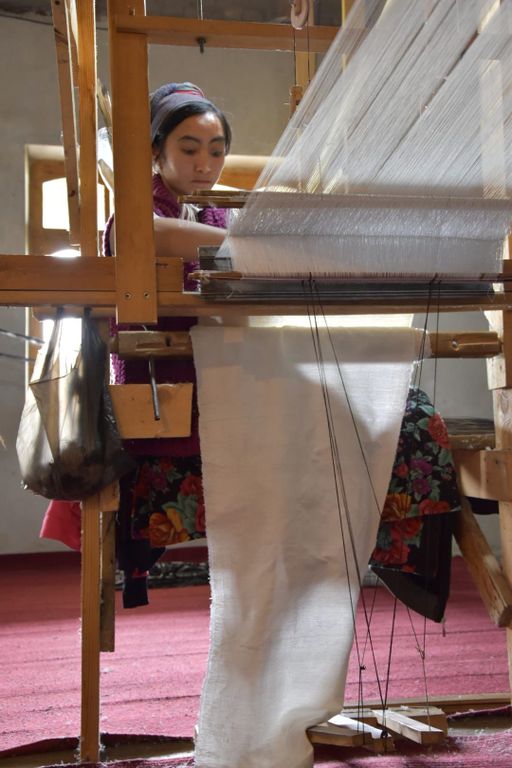 "La lavorazione dell'ikat inizia nelle case di queste donne, dove vengono allevati i bachi da seta insieme alle foglie di gelso. Tutta la famiglia partecipa all’attività e alle 30 fasi per ottenere il filo che viene poi raggruppato. La filiera prosegue con la lavorazione del tessuto nei laboratori attraverso un telaio di legno che permette a ciascuna donna di realizzare un metro di stoffa al giorno".