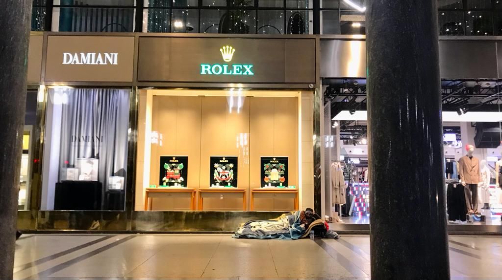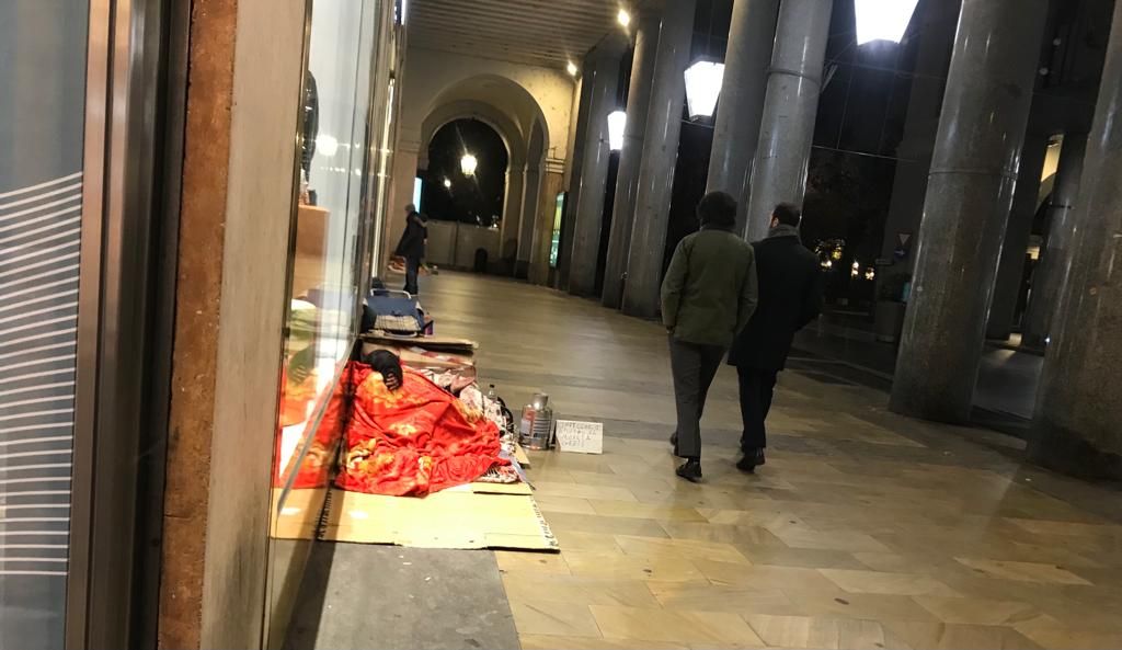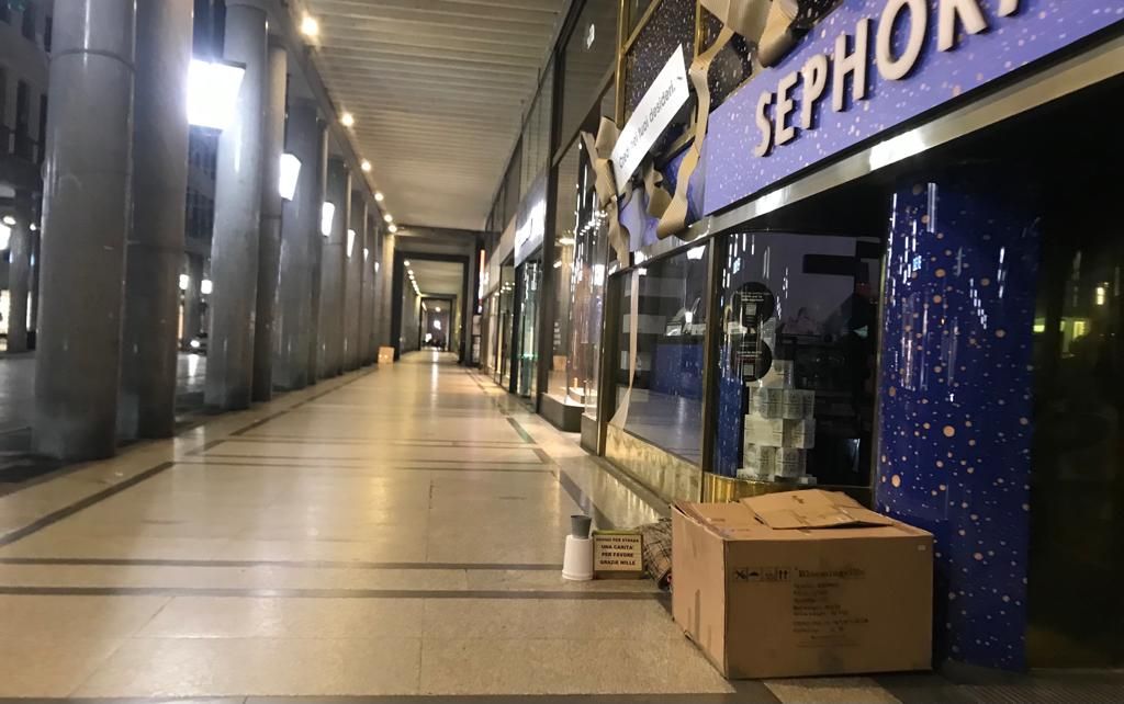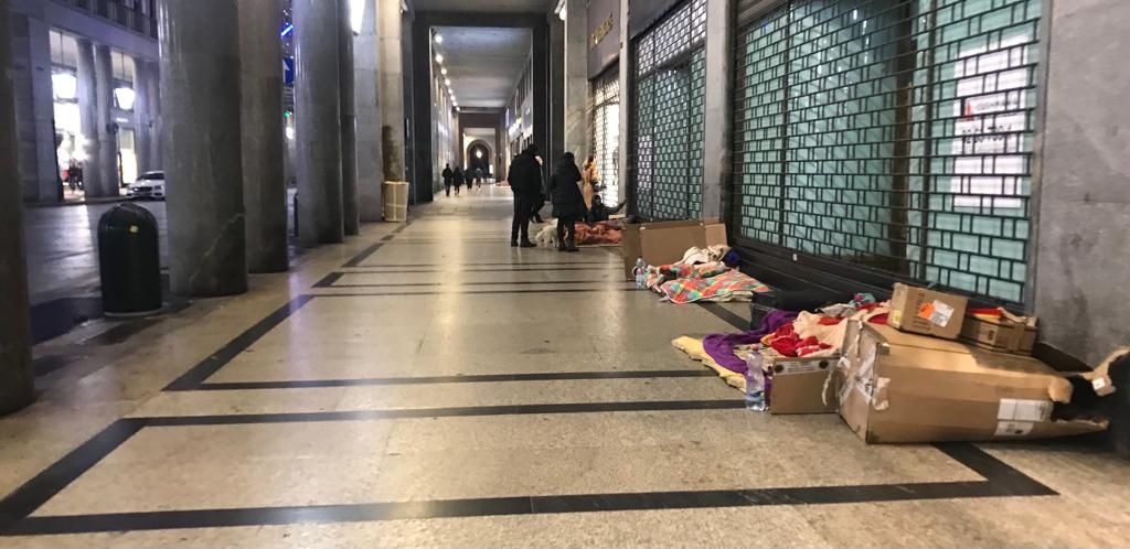 La situazione, ormai cronicamente critica, è di nuovo esplosa, con centinaia di persone al freddo. I giacigli sono ovunque: in via Roma, da ambo i lati, i rifugi di fortuna si contano ogni 15/20 metri. Davanti alle vetrine dei negozi tirati a lucido, addobbati. In via Viotti trovano "casa" sei disperati. Stessa situazione in via Po, a ridosso di piazza Vittorio e di quei locali in cui l'alcool scalda il petto a torinesi divertiti.