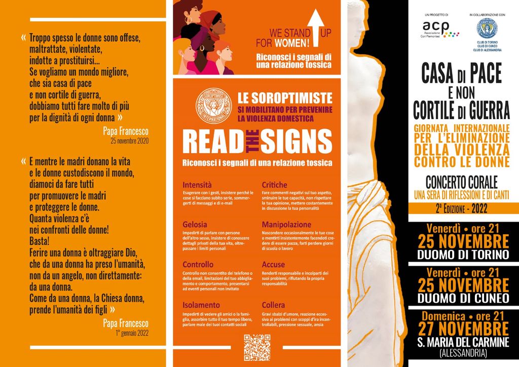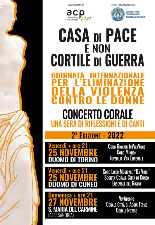 Venerdì sera 25 novembre alle ore 21 si terrà presso il Duomo di Torino il concerto corale “Casa di pace e non cortile di guerra”, in occasione della Giornata Internazionale per l’eliminazione della violenza contro le donne.