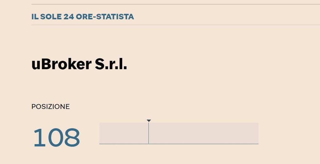 La graduatoria, costituita sulla base del sul tasso di crescita medio annuale del triennio (Cagr), vede ‘uBroker Srl’ al 108° posto con un indicatore di sviluppo pari al 62,29% relativo a un innalzamento dei volumi che dal 2018 al 2021 è cresciuto trascorrendo da 18 a 77 milioni di fatturato, con le assunzioni stabili passate da 17 a 47 dipendenti per il periodo in esame.
