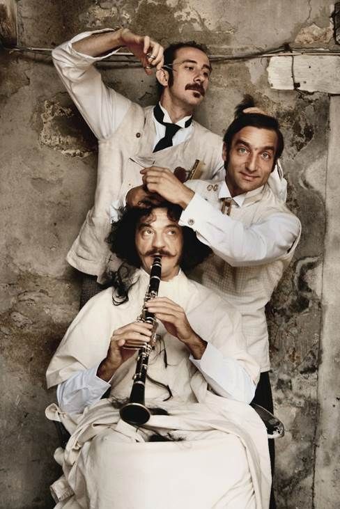 Specchi rettangolari appannati dal tempo e ricoperti da una ragnatela di graffi, vecchie sedie cigolanti, arnesi arrugginiti, odore di brillantina e impazienti avventori in silenziosa attesa del proprio turno. Mezzo secolo addietro, la barberia era luogo di ritrovo preferito dai signori, posto discreto, dove discutere liberamente, con musica, caffè, aneddoti balzani del fidato barbiere. La barberia, punto nevralgico del paese, è ricreata nelle sue atmosfere, in cui il barbiere cantava, suonava, serviva da bere, consigliava, intratteneva i suoi ospiti facendo barba e capelli. Nel gioco, il palco è la barberia, animata dai tre aspiranti barbieri, e la platea una grande sala d’attesa, in cui il pubblico assurge a parte integrante dello show. Spettacolo giocato sul tempo dell’attesa, attesa del cliente da parte dei barbieri che ingannano il tempo cimentandosi in singolari dimostrazioni di abilità, attesa anche da parte dello spettatore, che aspetta di vedere cosa i tre barbieri si inventeranno nella scena successiva. Un’attesa che mistifica una più profonda crisi di identità, giacché “essere barbieri” significa “avere un cliente” così come “essere attori” significa “avere un pubblico”. Sciamani e dottori al tempo stesso, i barbieri/musicisti ostentano orgogliosi il proprio talento gestuale, certi che il cliente uscirà pulito e liscio, rigenerato nel corpo ed elevato nello spirito.