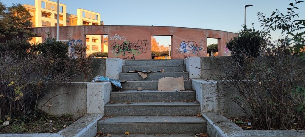 A risaltare è la sporcizia, presente ovunque nel parco ma soprattutto al centro dell’area, dove la rete per arrampicarsi è diventato il riparo di fortuna di alcuni senzatetto. È stata segnalata anche la presenza di siringhe che, insieme ai vetri rotti, non rendono la zona sicura per i bambini.